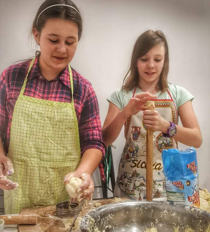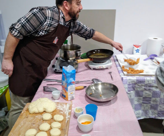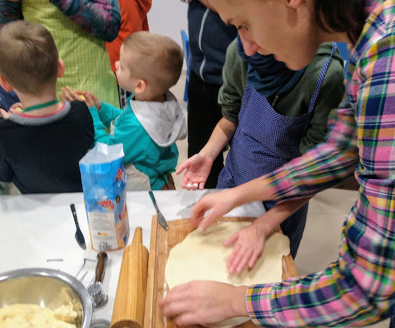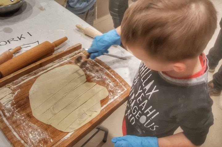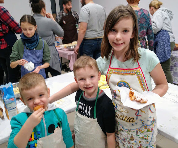 łasuchów małych i tych całkiem dużych. Wszyscy mieli szansę posłuchać, jak to dawnymi czasy obowiązkowo opychano się, nie tylko zresztą pączkami, przez cały okres karnawału. Pod czujnym okiem Gospodarzy uczestnicy ochoczo wyrabiali ciasto według rozmaitych tradycyjnych, choć nieco zmodyfikowanych receptur.