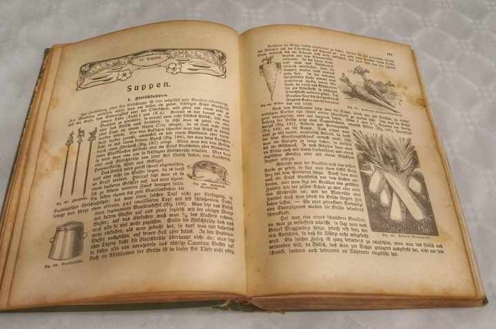 według „Wielkiej ilustrowanej książki kucharskiej dla stołu mieszczańskiego codziennego i odświętnego” Matyldy Erhardt (Berlin 1906)