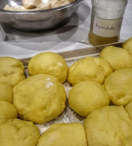 • ożywione ciasto rozwałkować na placek grubości ok. 2 cm i wycinać mniej więcej 7 cm krążki (tradycyjnie używano do tego celu kieliszków do wina), zostawić do wyrośnięcia